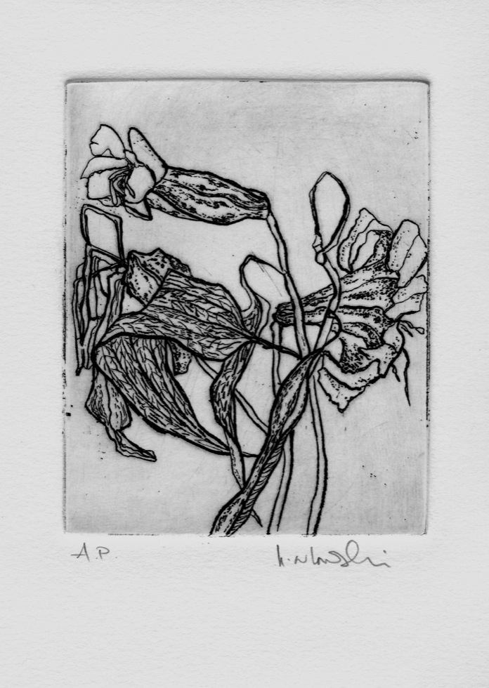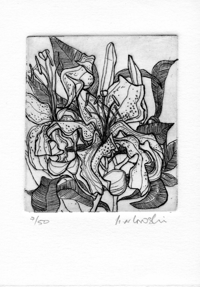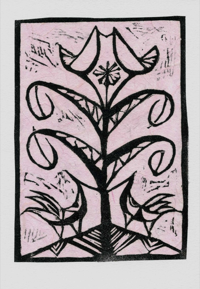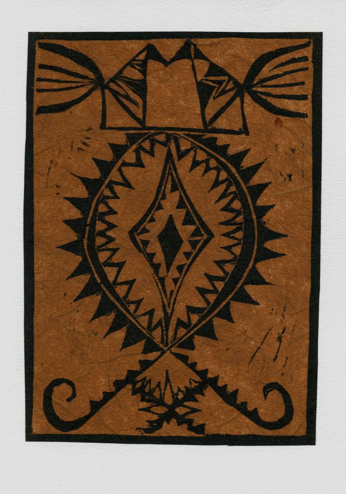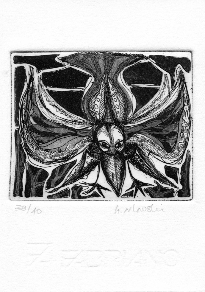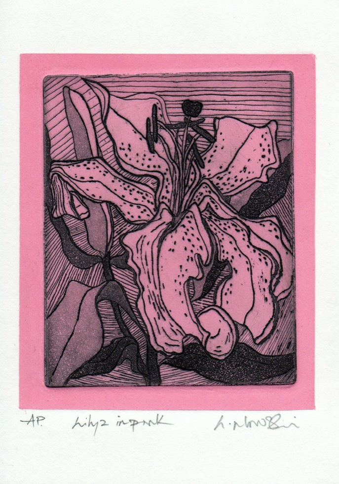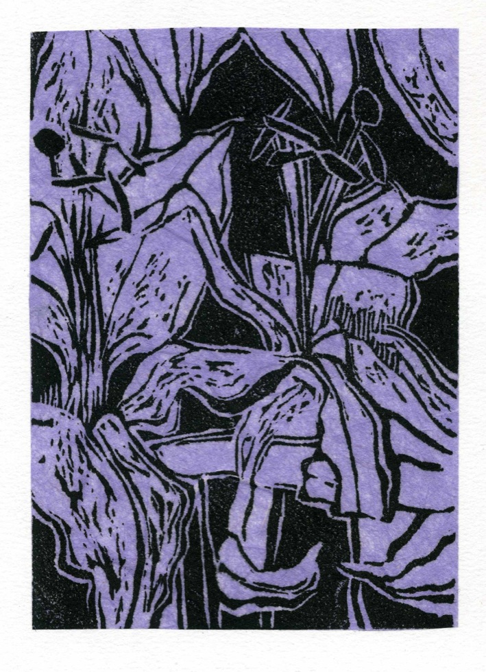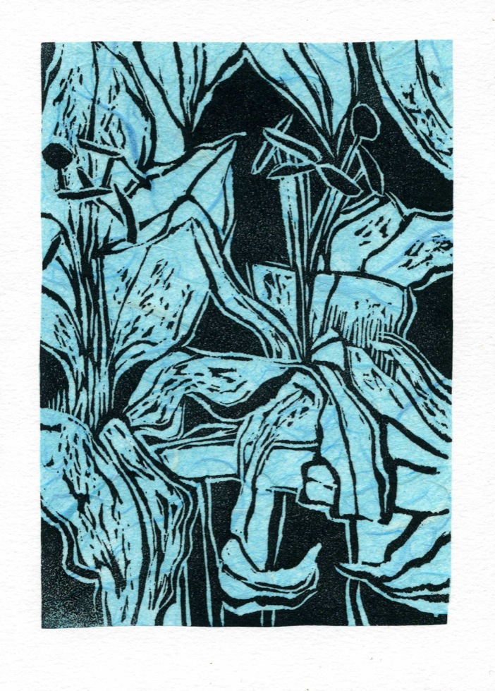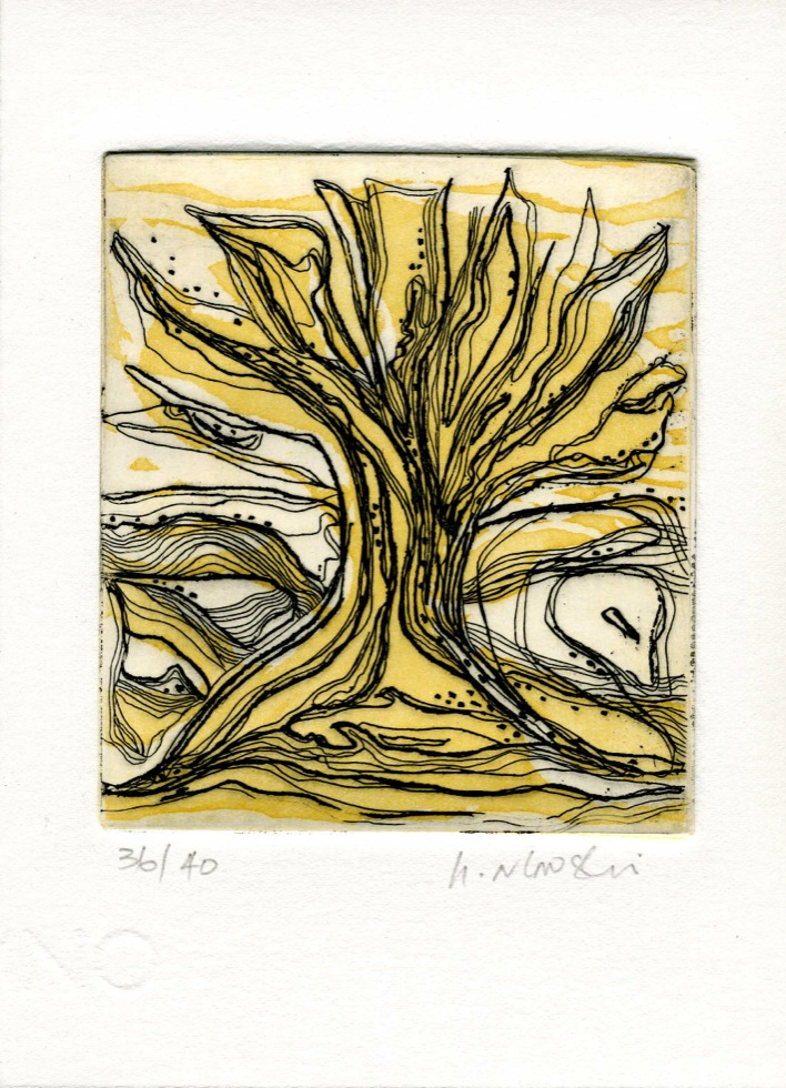 The Art In An Envelope Series is a play with various print techniques in small format. Small enough to put in an envelope and post to a friend with your personal wishes. Print techniques used might be Intaglio, including hard and soft ground and aquatint, relief print, reduction relief, typeset, or a combination, and printed on acid-proof card. Most cards will be of a limited edition. Some like relief cards may have a seamless edition.