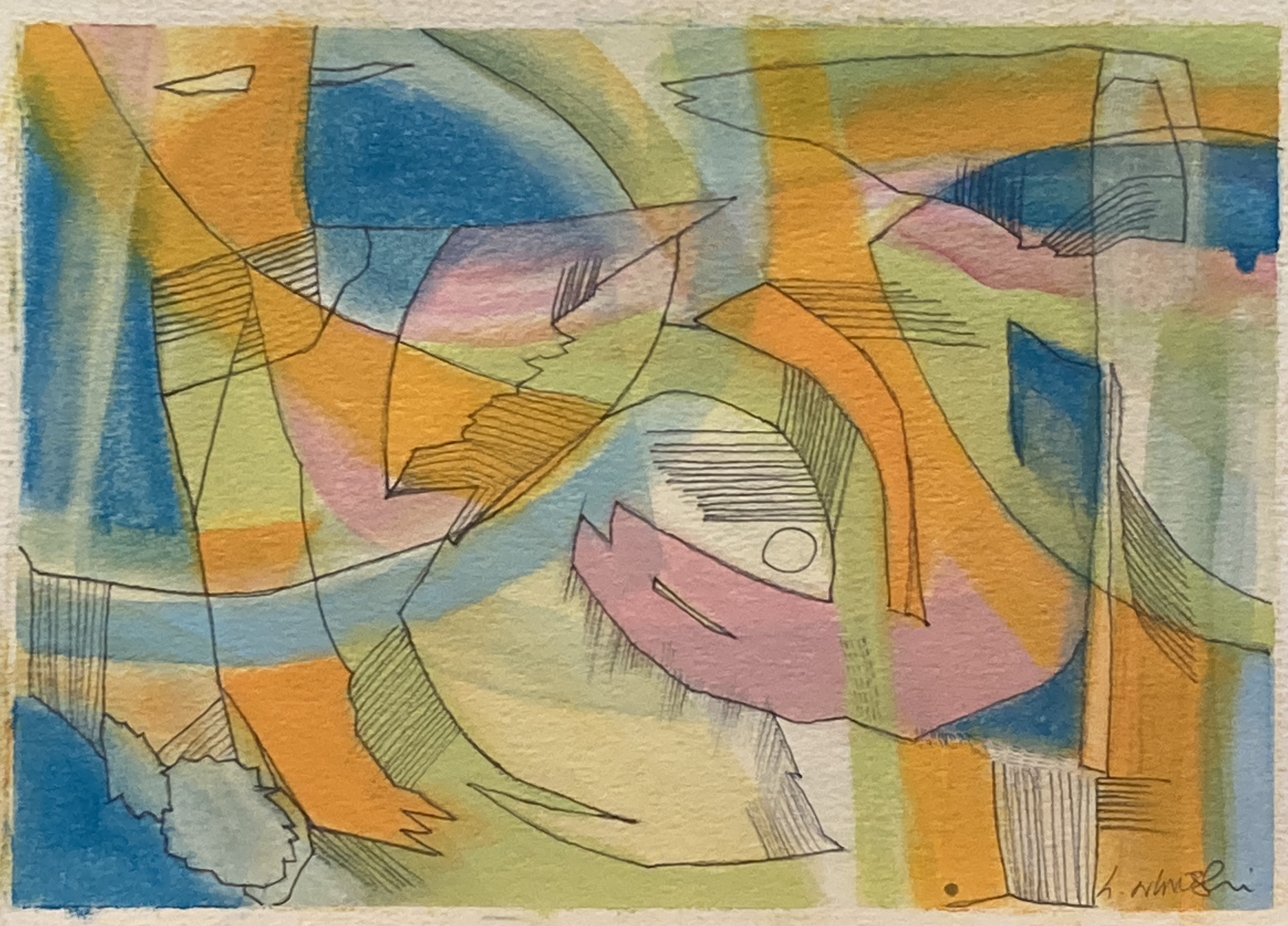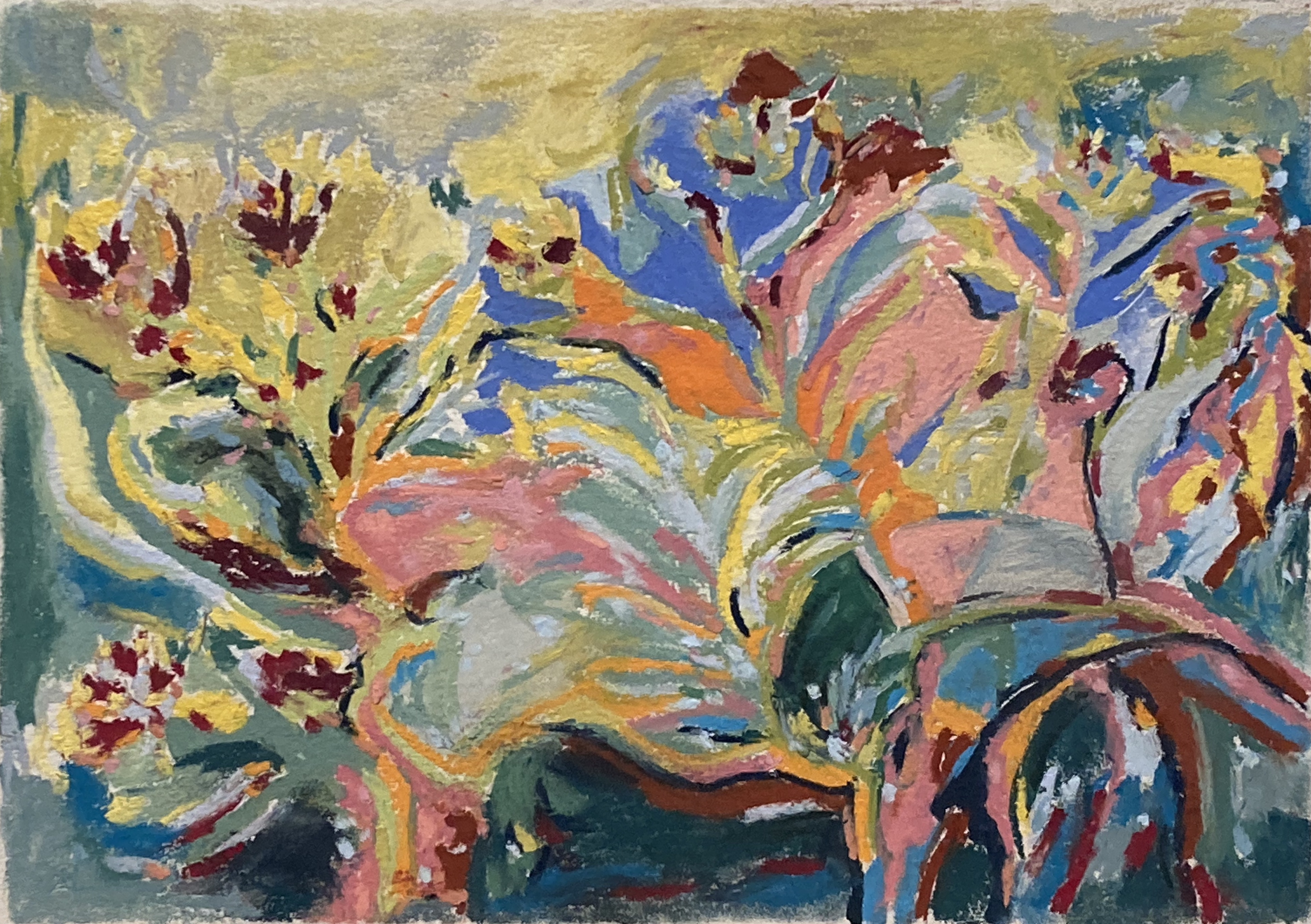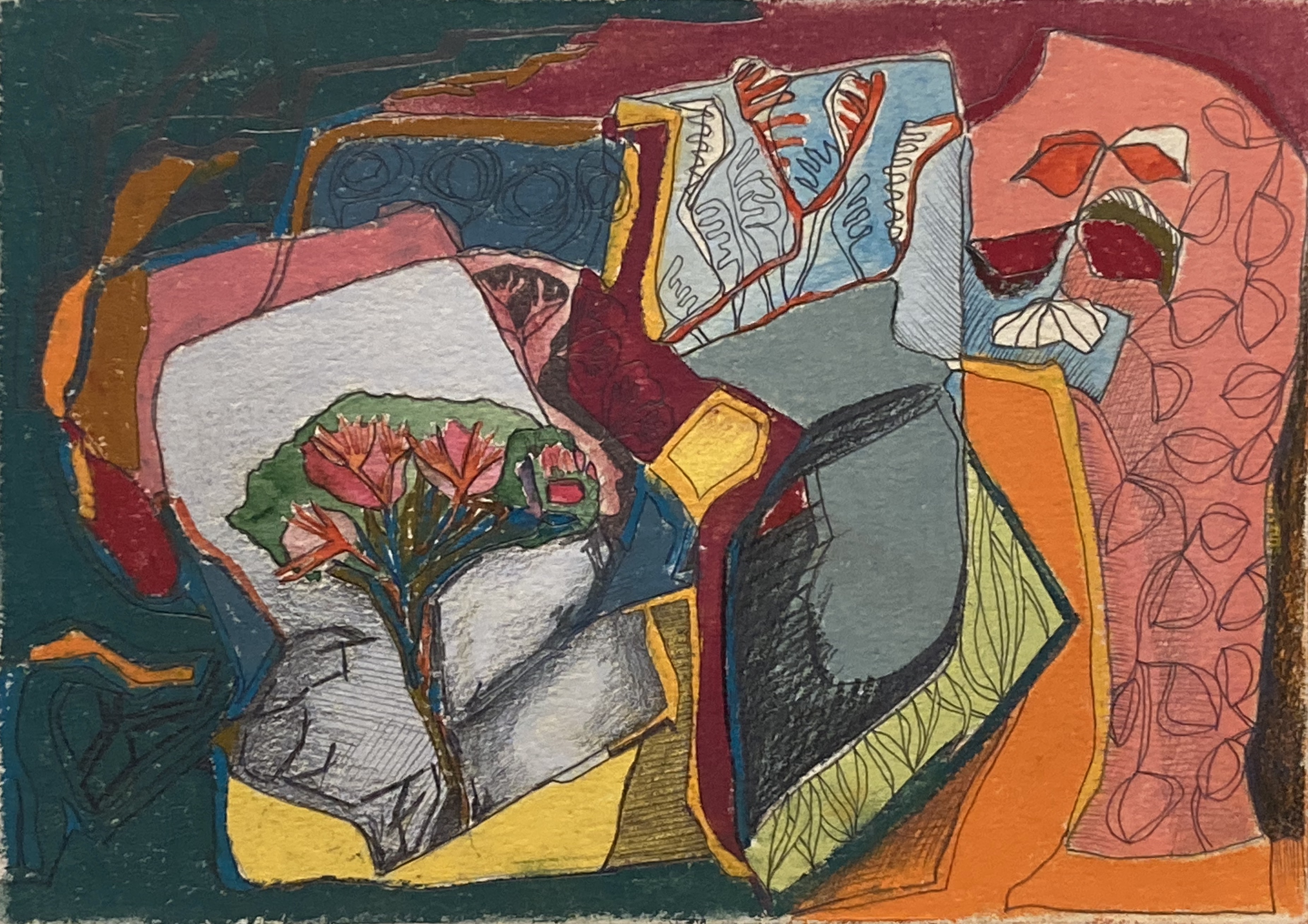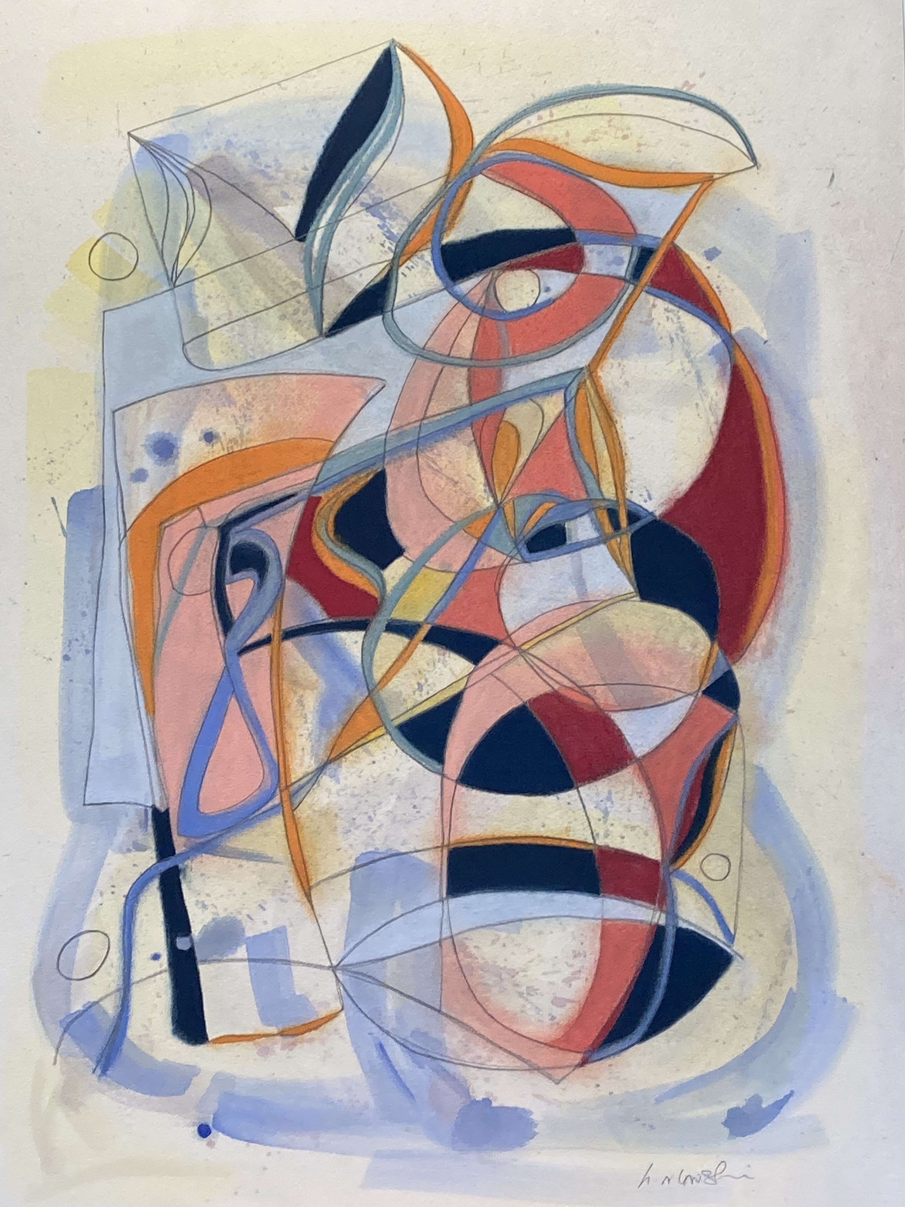 In the early 2010’s dramatic colour workings, strong forms, banged into my vision with the Sierra de Guara series. From 2014 with my many visits to Poland came music, soothing the makings of the Kazimierz series – Dustin O’Halloran and ‘Lumiere’. More recently, Anouar Brahem’s ‘Le pas du chat noir’ has carried me into a new approach to mark-making.